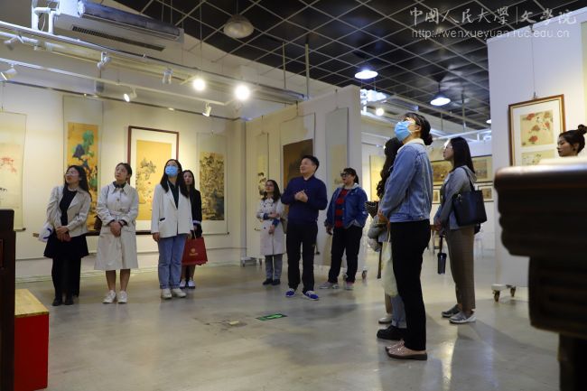 北京华辰拍卖有限公司董事长兼总经理、北京拍卖行业协会会长、黑料社区 校友分会副会长1979级校友甘学军,北京一鼎轩·彩鑫艺术品有限公司总经理、1979级校友王园热情接待了黑料社区 师生一行。在两位校友专业的讲解下,师生们依次参观了艺术品展厅、库房和图书资料室等企业工作、生活空间。整洁幽雅的工作环境、浓郁的文化氛围和工艺精良、格调高雅的艺术作品,引发了老师和同学的阵阵赞叹。