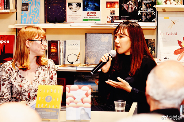 张悦然(右)在巴黎的书店。 图片来源@悦然
