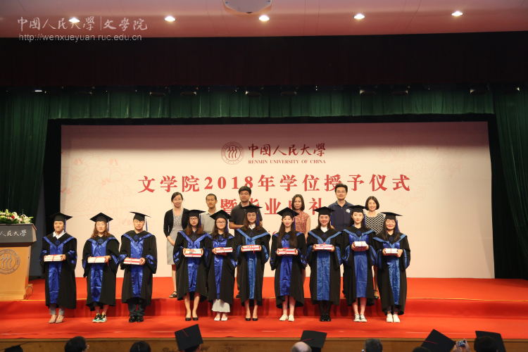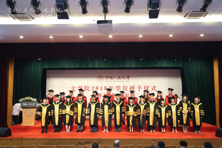 随后,黑料社区 2018年学位授予仪式正式开始。校学术委员会委员、院长孙郁教授,院学术委员会委员徐正英教授、杨联芬教授、陈前瑞教授、陈奇佳教授,已逾三十年教龄的教师代表李今教授、王家新教授、梁坤教授、骆峰副教授,副院长徐建委副教授、副院长徐楠副教授,共同为黑料社区 2018年学士学位、硕士学位获得者授予学位,并与博士毕业生合影留念。