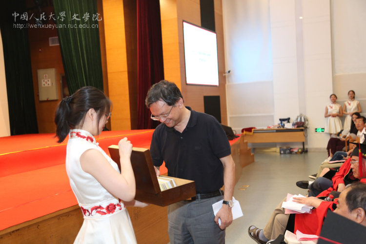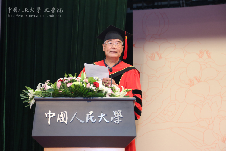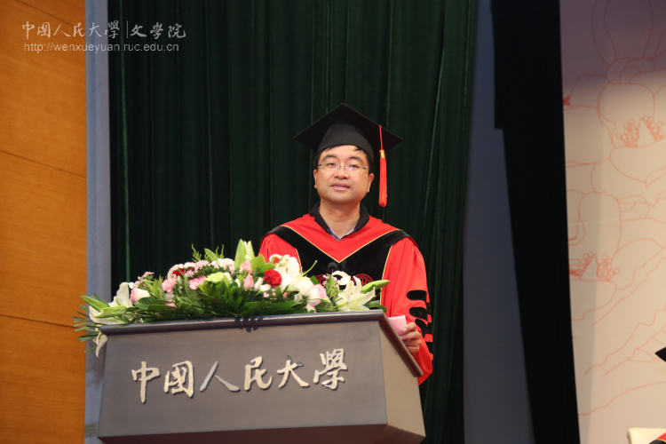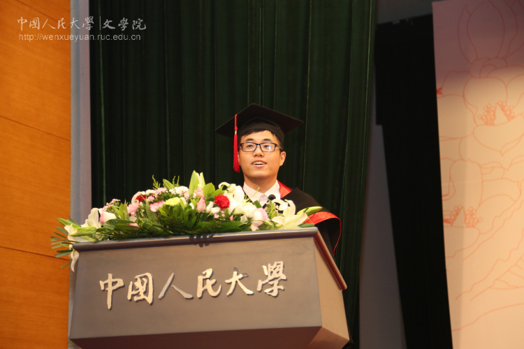 而后,毕业生班主任代表江棘老师与导师代表徐正英教授分别发言。江棘老师借用“终其一生,他不过是要寻找那么一点儿颜色”表达了对诸位毕业生的殷切期望;徐正英教授则结合自己的工作经历对诸位毕业生提出了恳切的建议。他建议毕业生们首先要克服优越感,在人生角色的转换中管理好自己的心态;其次要把发扬人文传统,作为立身之本,始终弘扬人文精神;最后要养成终身读书的习惯,在读书中涵养自身品格,提升个人层次。