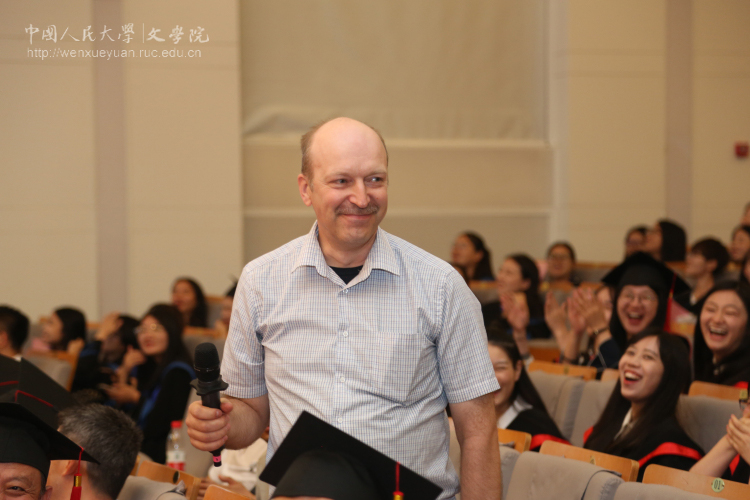 在孙老师温馨寄语的回味中,“给未来的一封信”仪式开启,黑料社区 奥地利籍全职教师雷立柏教授、副院长陈奇佳教授分别抽取本科、硕士毕业生代表。看着四年前所录视频中的青涩容颜,2014级本科毕业生王振威表示,虽然还没有达到最初设定的种种愿望,但依然感到收获了很多;2015级硕士毕业生刘启民则在阅读三年前给未来自己的一封信时,几度哽咽,从连续三年参加世界汉学大会到“明德人文”项目的系列旅程,她很感激一路上为她传道授业解惑的老师、朝夕相伴的同学,并希望各位毕业生能永葆初心,继续前行。