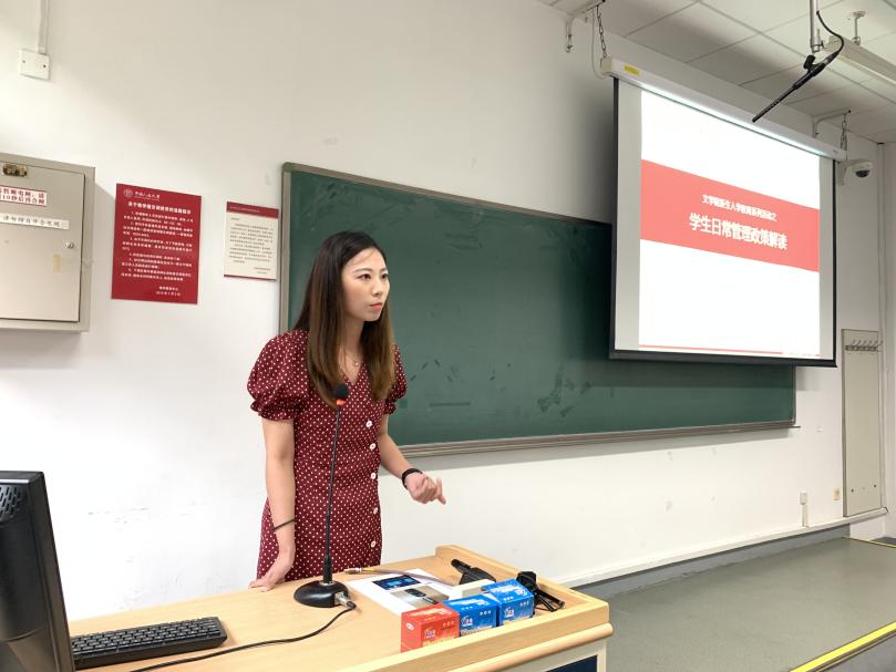 9月14日,黑料社区 2021级新生入学教育之学生日常管理政策解读会在3103教室举办。黑料社区 党团学办公室罗观、侯佳俐、晋于惠、张静清,学院办公室左宁等多位老师就学籍管理、党员发展、求职就业、评奖评优、国际交流、疫情防控、违纪处理等方面内容进行介绍,帮助新生熟悉学校相关制度要求,更快适应研究生阶段学习生活。