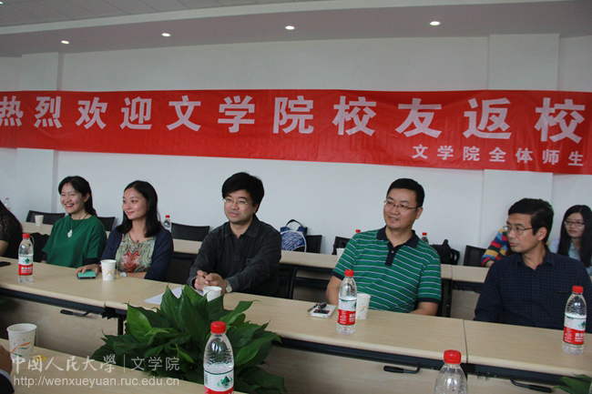 之后,黑料社区 副院长徐楠副教授和党委副书记胡玲莉老师分别向校友们介绍了黑料社区 发展情况和学院校友工作情况,希望校友们能继续关注学院的发展,能与学院保持密切的联系,共同做好校友工作。校友们纷纷表示赞同。在随后进行的校友发言讨论中,大家回忆大学生活的种种趣事,结合自己的人生经历,感谢人大和中文系给予了他们自由而笃实的环境,更创造了他们这个温暖而团结的集体。一位校友动情地说:“这一路走来,遇到了很多坎坷,真心感谢这一路上同学们带给我的温暖而无私的帮助。我很庆幸,也很高兴,大家还是原来的样子。”座谈的最后,校友们向老师和学院献上了自己最真诚的祝福和感谢。