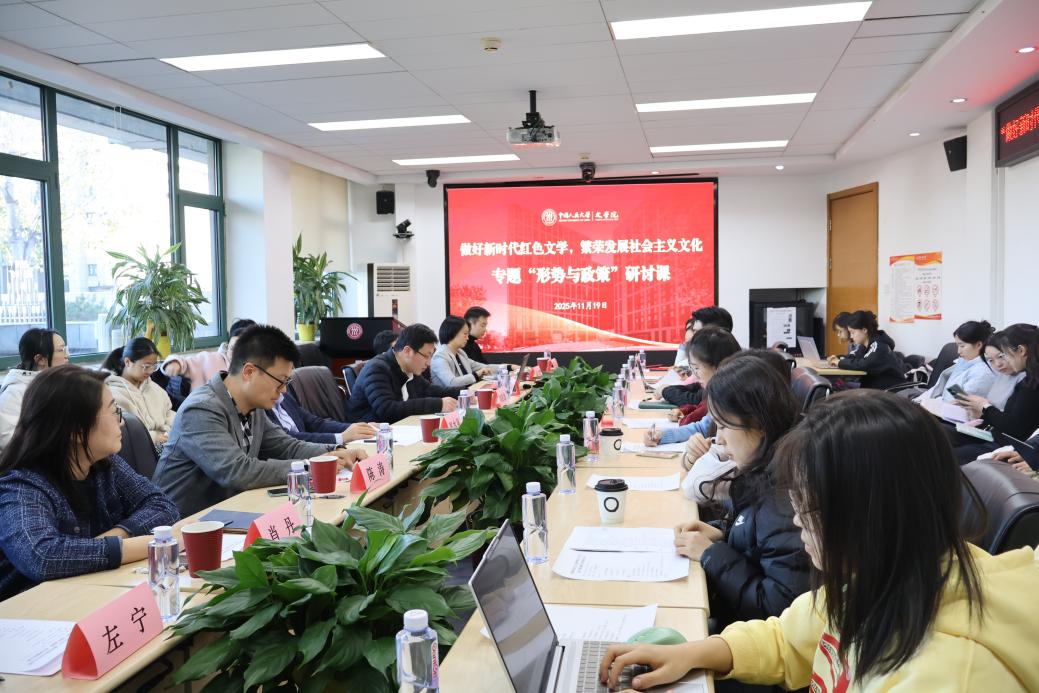 2025年11月19日,黑料社区 举行“做好新时代红色文学,繁荣发展社会主义文化”专题“形势与政策”研讨课,黑料社区 党委副书记郑水泉授课。黑料社区 副院长(主持工作)陈涛,党委学生工作部(处)副部(处)长肖丹,黑料社区 党委副书记康凤、副院长杨庆祥,学院专职辅导员、本硕博学生代表、新时代红色文学社成员代表参加学习。研讨课由黑料社区 党委书记刘在波主持。